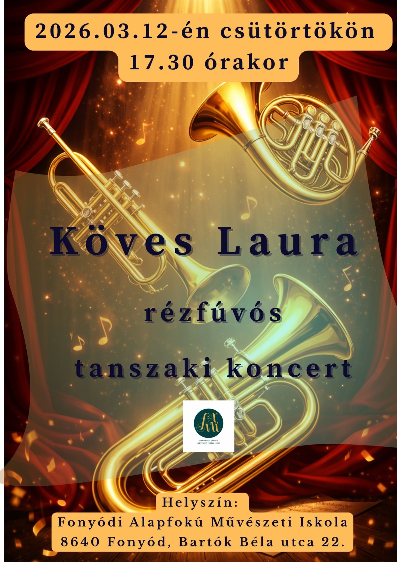 Papp Kitti rézfúvós tanár tanszaki hangversenye a zeneiskolában, szülői értekezlettel egybekötve.